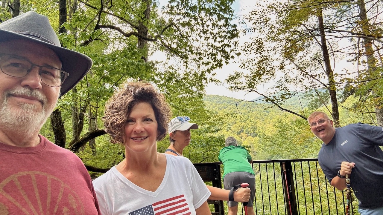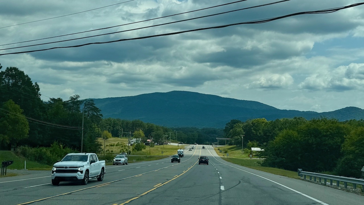 We traveled from Chris and Carey’s this morning on our trip to the Top of Georgia Airstream Park. It was about a one-hour drive. The roads were winding hills and lots of hairpin curves. The mountains were beautiful, even though they were partly covered by clouds.