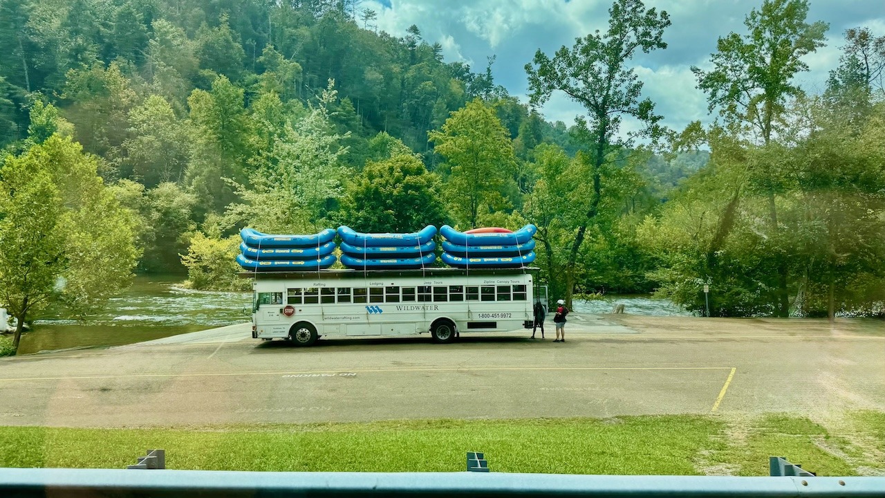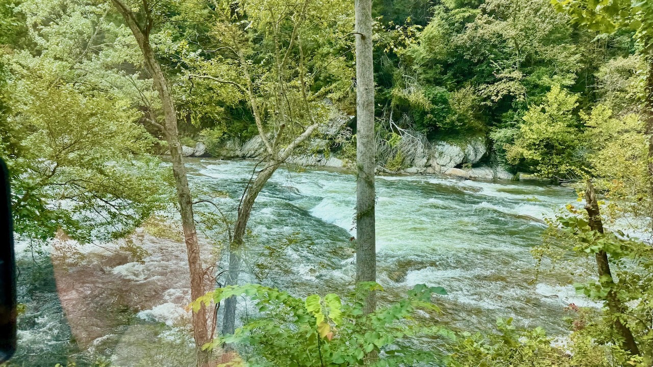 We stopped for lunch in a grocery store parking lot, not knowing we were so close to the Ocoee River that had picnic tables a plenty. The river was beautiful. The roads were winding.