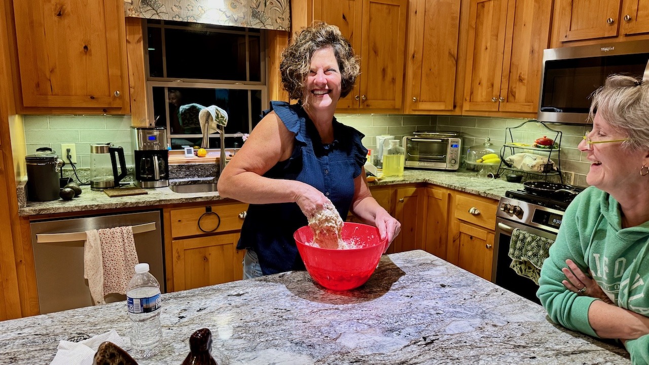 That evening we ate dinner at their home and we parked in the driveway, which was the plan. We took a 2-mile walk after dinner and then Diane and Carey started making their sourdough bread.