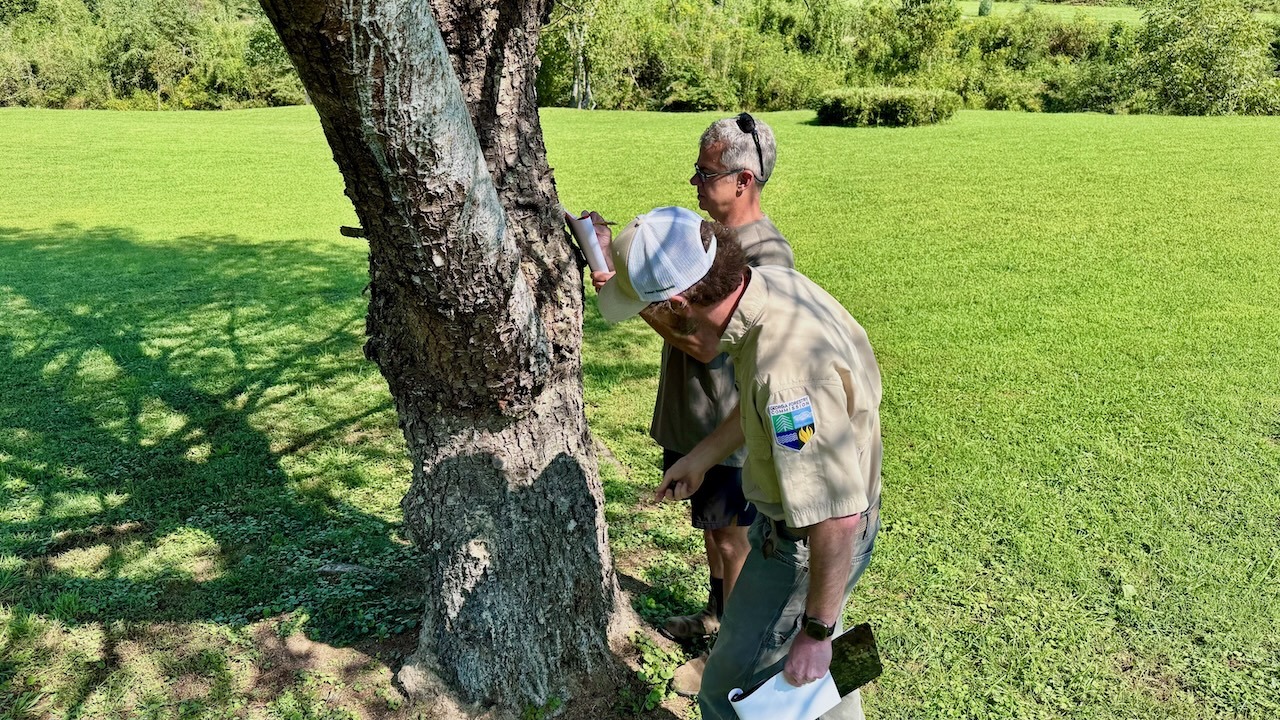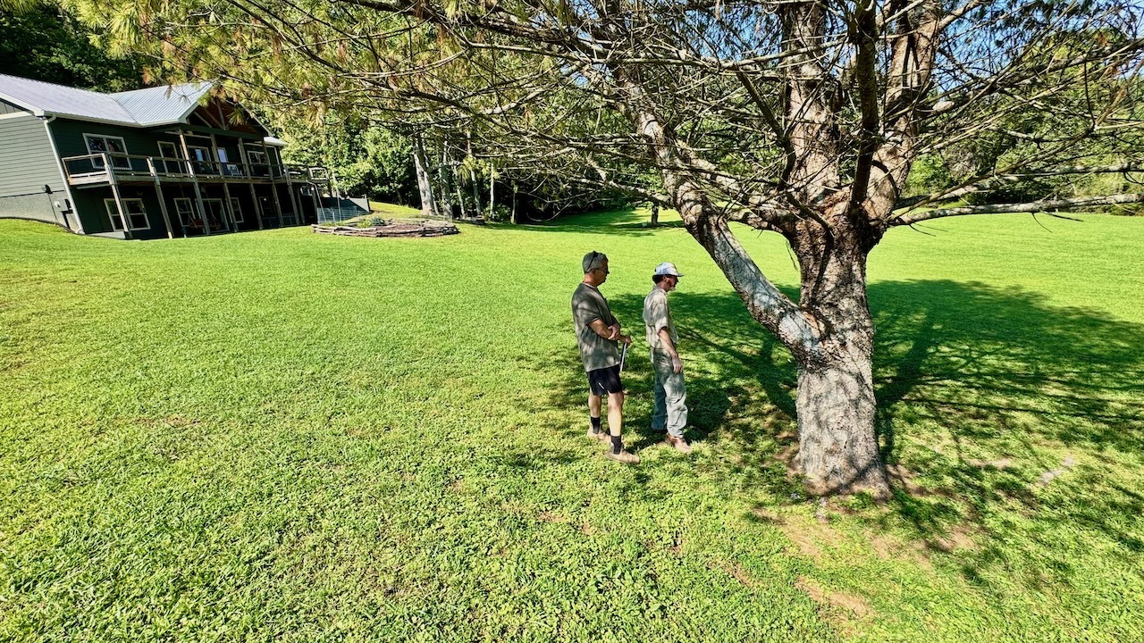 Chris has a tree man coming at 10:30 a.m. to look at the pine tree that the pine beetles have gotten into. It does not look good for this tree. You can actually hear the beetles making a noise inside the bark. When the tree man arrived, they looked at the tree. He felt that it was best that that tree be taken down and disposed of. He also walked the entire property, looking for other trees that might be in some type of distress. Fortunately, there were not any more.
