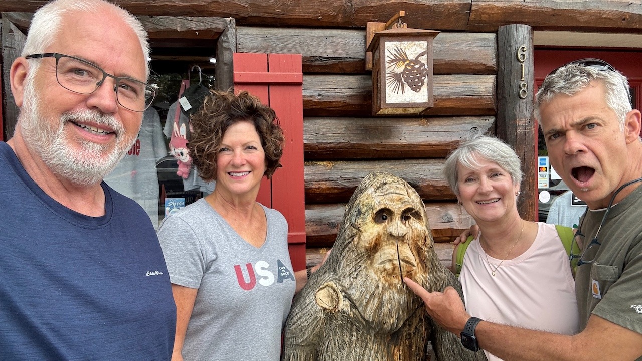 We plan to go to Helen to shop this morning and then hike to the cross if the weather holds. It has rained during the night, so the cross hike was too muddy.