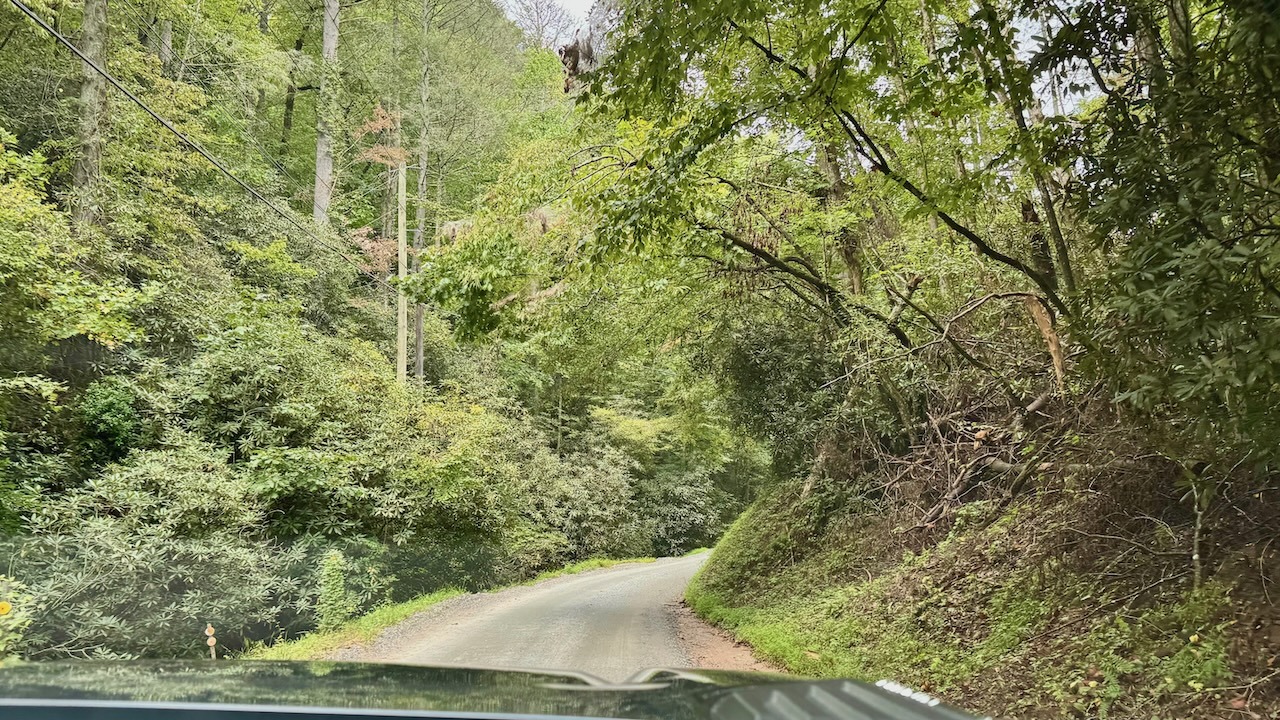 We were trying to avoid the parade and ended up on a one-lane gravel road. Very sharp turns. We met four cars, I think.